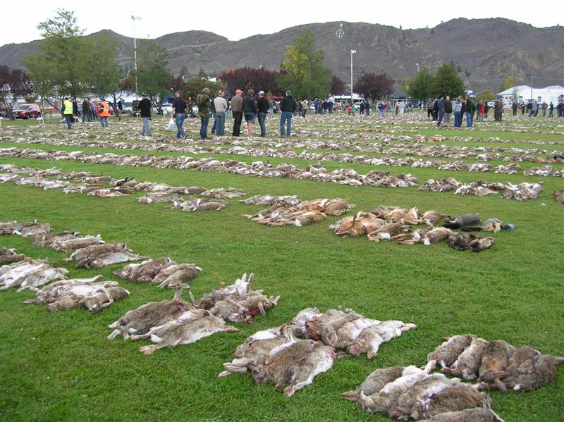 Volkan Bey, dediğiniz gibi bu tavşanlar ada tavşanı yılda 4-5 batın yaparlar ve her batında ortalama 8 yavrusu olur. yani 1 çift 1 yılda 20 çift olabilir. Doğal düşmanı da çok olmayınca demeyelim de,üreme alanlarının yerleşim yerlerine yakın olması nedeniyle  aşırı üremeleri ve haliyle bu kadar avlanmaları normal :) ilk resim avusturalya veya yeni zellanda değil, nemaha nebraskada avlanmışlar.